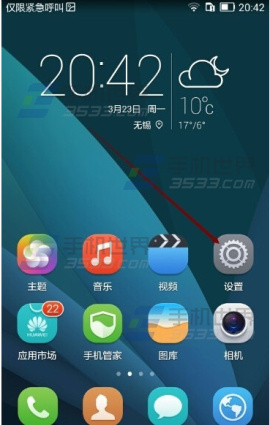 1、打開華為榮耀7,然後再手機上找到設置圖標,點擊進入