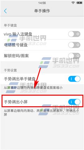 1)進入X5Max的設置界面,點擊【單手操作】,開啟【手勢調出小屏】右邊按鈕。(如下圖)