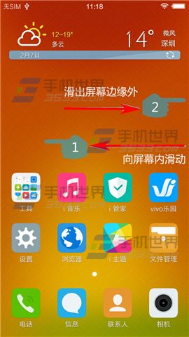 2)回到主界面向屏幕內滑動,再滑出屏幕邊緣外即可。(如下圖)