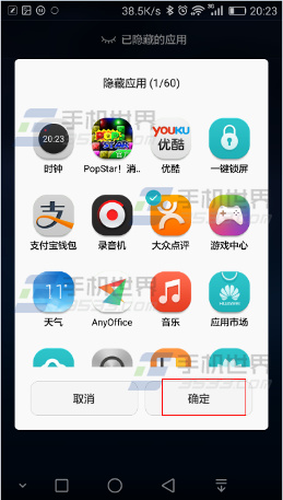2)點擊+,然後點擊要恢復顯示的應用,再點擊確定。(如下圖)