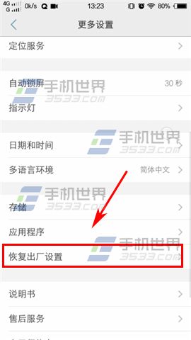 2)在更多設置界面下點擊【恢復出廠設置】進入,點擊【清除所有數據】。(如下圖)