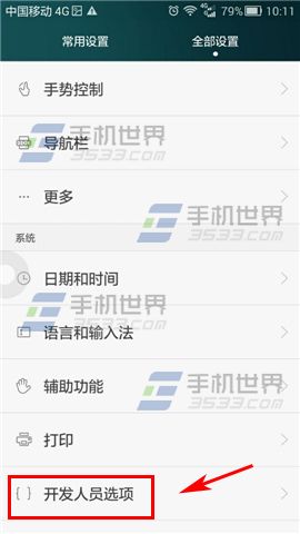 1)點擊進入華為榮耀4C的設置,選擇全部設置一欄,點擊【開發人員選項】進入,找到並點擊【後台進程限制】。(注:開啟開發者選項請點擊相關教程)(如下圖)