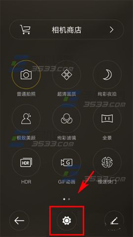 1)打開OPPO R7的相機,點擊右下角【五圓圈】進入,點擊下方【齒輪】。(如下圖)
