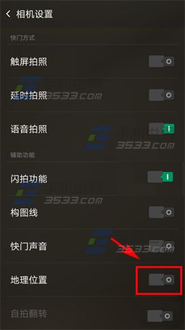 2)在相機設置頁面,開啟【地理位置】右邊開關即可。(如下圖)