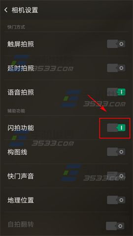 2)在相機設置界面開啟【閃拍功能】右邊按鈕即可(如下圖)