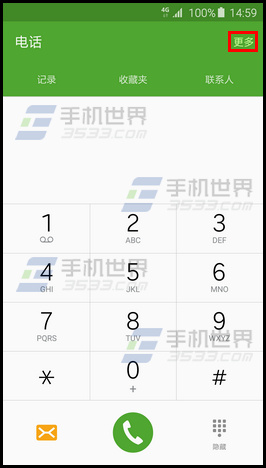 1)首先先點擊頁面的上【電話】,進去之後點擊屏幕右上角的【更多】。(如下圖)