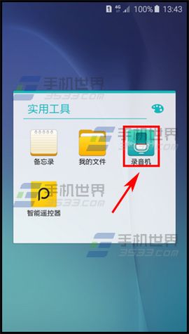 1)在應用程序界面點擊【實用工具】,打開後點擊【錄音機】。(如下圖)