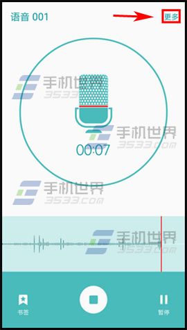 2)在錄音界面點擊【錄音按鈕】,再點擊右上角【更多】。(如下圖)