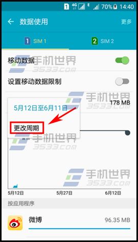 2)點擊【更改周期】,設置使用流量計算起始日期,點擊【設定】。(如下圖)