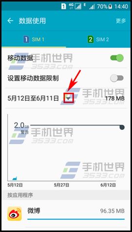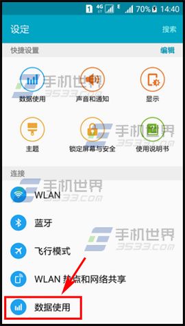 1)進入設置界面,在連接一欄點擊【數據使用】,在數據使用界面點擊【下拉箭頭】。(如下圖)