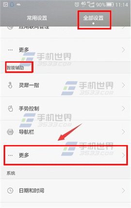 1)點擊【設置】,進入後選擇全部設置,找到智能輔助一欄,點擊【更多】。(如下圖)