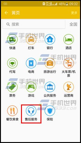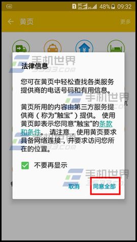 2)屏幕彈出一個“法律信息”的說明,點擊【同意全部】,然後選擇黃頁的類型,這以【售後服務】為例。(如下圖)