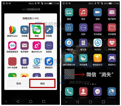 2)選擇要隱藏的應用,該應用即可消失。(如下圖)