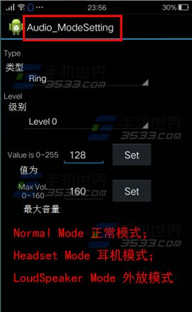 2)選擇【LoudSpeaker Mode】外放聲音模式。再設置【Set】值即可。PS:請謹慎設置Set的數值,數字不得超過最大值限制,遭成破音的話小編概不負責!!(如下圖)