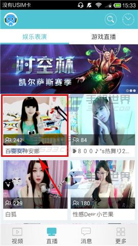 1)打開網易CC,進入首頁點擊【直播】按鈕,接著選擇一位主播的【直播間】。(如下圖)