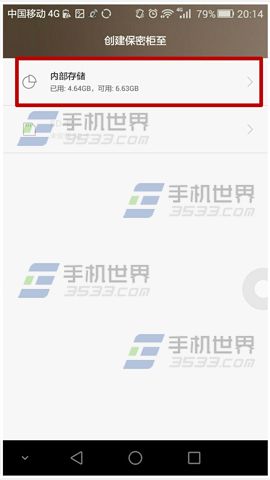 3、選擇創建保密櫃的位置,比如在【內部存儲】;