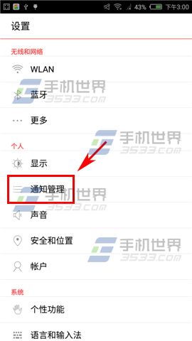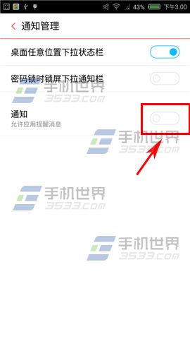 4、如果你全部軟件都不需要推送到你手機通知欄上,那麼直接在通知管理上點擊【通知】關閉。