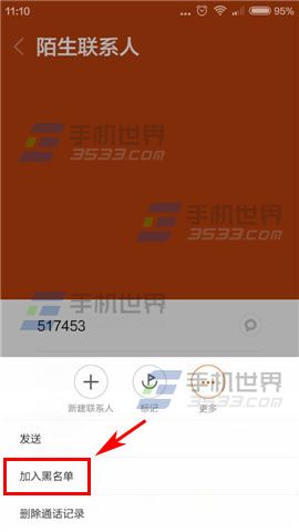 1)進入小米Note撥號界面,點擊要拉黑的【電話號碼】,進入聯系人界面點擊【更多】;(如下圖)