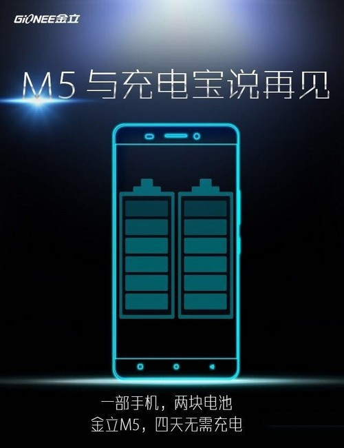 金立官方微博今天發布微博表示,“#金立M5超級續航#手機電量影響你的心情嗎?當電量低於50%時,你是否開始心慌?當電量低於20%時,你是否特抓狂?當電量低於10%時,你是否痛不欲生?當電量低於5%時,你是否連去死的心都有了?金立M5,創新地把2塊電池融入1部手機,一次充滿4天不需充電,讓你每天都嗨森!續航碉堡了沒?!”