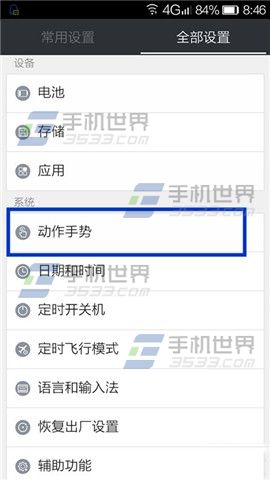 打開金立S7【全部設置】界面點擊【動作手勢】,勾選【雙擊喚醒】即可。(如下圖)