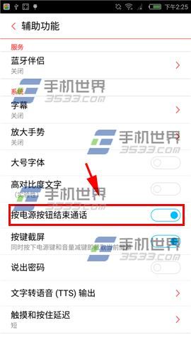 2)開啟【按電源鍵結束通話】即可。(如下圖)