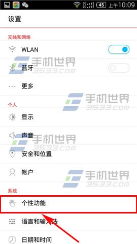 1)打開努比亞Z9【設置】,點擊【個性功能】。(如下圖)