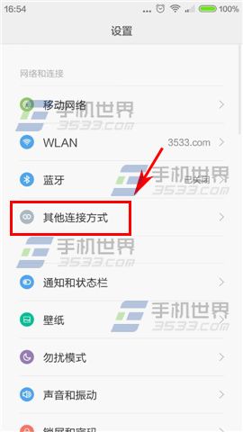 1)進入手機界面點擊設置後再點擊【其他連接方式】;(如下圖)