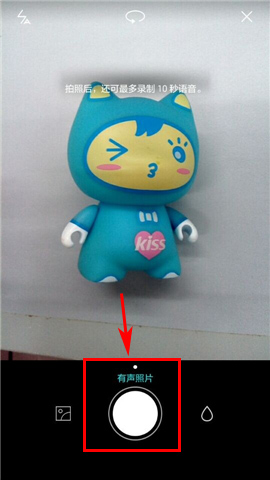 2)進入後再點擊紅色邊框內的【圓圈】拍照,拍完照自動錄音,最多可錄制10秒聲音,也可以點擊【藍色圓圈】提前結束。(如下圖)