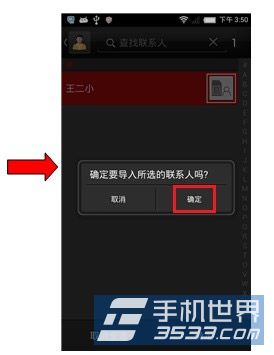 2、根據自己的需要選擇要導入的聯系人,也可以點擊【選擇全部】,然後點擊【確定】,最後在提示窗口中點擊【確定】就可以了。