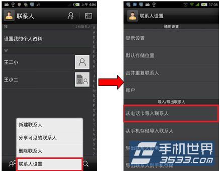 打開努比亞Z9Max的【聯系人】,點擊手機的【菜單鍵】,選擇【聯系人設置】,以導入SIM卡聯系人為例,點擊【從電話卡導入聯系人】;