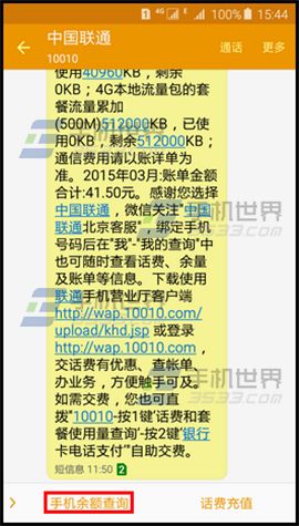 2)打開某個通知信息,點擊【手機余額查詢】;(如下圖)