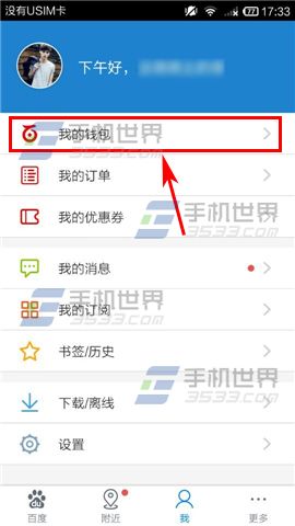 打開手機百度,在【我】的頁面點擊【我的錢包】一項,進入到百度錢包後選擇【支付安全】。(如下圖)