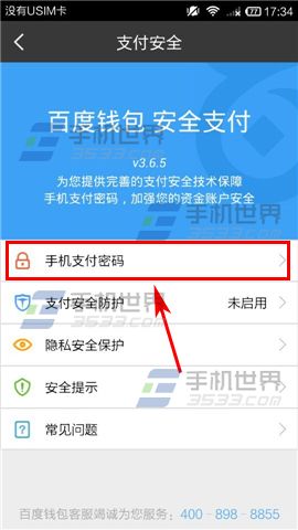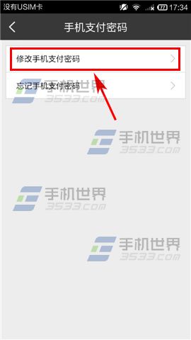 2)點擊【手機支付密碼】一項,進入到支付密碼詳情頁面後,選擇【修改手機支付密碼】。(如下圖)
