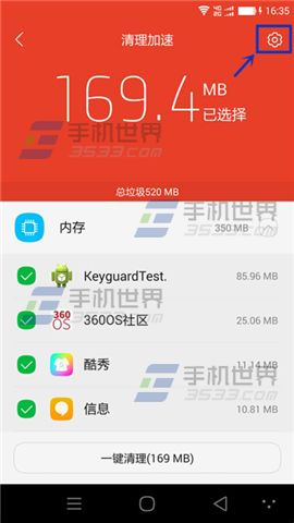 1)首先打開酷管家點擊【清理加速】,然後在點擊右上角【齒輪圖標】;(如下圖)