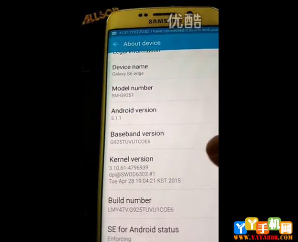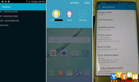 丫丫網資訊,就在上周,谷歌低調的發布了Android 5.1.1系統,但是這次,谷歌的親兒子們就沒那麼那麼好運了,因為已經有設備比它們更早的體驗上了Android新版本。但今天在國外的論壇上,有網友曝光了三星Galaxy S6已經可以更新到Android 5.1.1系統。該網友還帶來了三星三星S6新系統的演示視頻,從視頻中我們可以清晰的看到在“關於手機”界面下,這款手機的系統為Android 5.1.1,內核編譯日期為 4 月 28 日。
