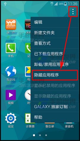 1)點擊三星S6的【應用程序】進入應用程序列表,點擊右上角【...】,選擇【隱藏應用程序】;(如下圖)