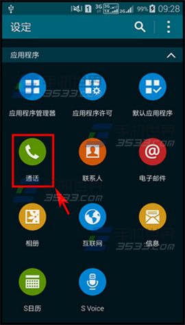 1)打開三星S6的【設定】,選擇【應用程序】欄的【通話】;(如下圖)