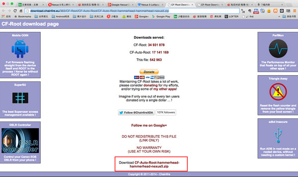 Android 5.0的底包已放出,不過現在大家更關心的已經不是能不能刷上Android 5.0,而是怎麼ROOT的問題(ORZ)。當然不用擔心啦,國外大神早已開始搗鼓,目前已經成功開發了Android 5.0 ROOT for Nexus 5的工具:CF-Auto-Root,且操作步驟相當簡單,無需手動替換內核。