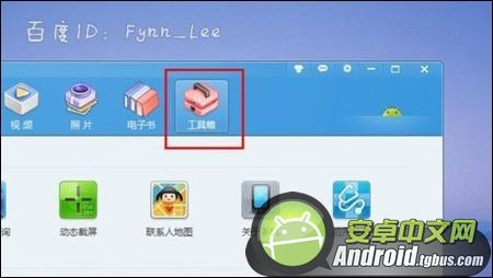 5、點擊騰訊手機管家pc版導航欄處的“工具箱”導航標簽按鈕進入工具箱。