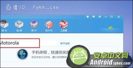 4、確保騰訊手機管家連接到手機,如圖所示,程序會識別手機型號,說明已經連接正常。