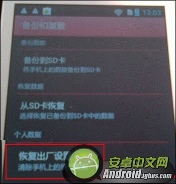 2、如果還是不能正確識別sim卡,可能是手機系統出現問題,帶大家重置下手機,還是提醒下備份好個人資料,比如通訊錄、短信、照片等,重置方法:進入系統設置-備份和重置,如下圖: