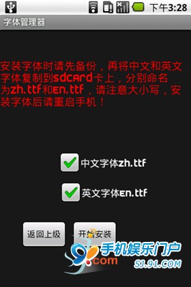 1、首先去各大網站上下載自己喜歡的字體,一般都是ttf格式的,把自己喜歡的字體重命名,如果是中文字體命名為zh.ttf,如果是英文字體命名為en.ttf,放到SD卡目錄下。根目錄即可