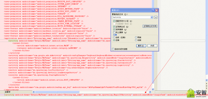 進入AndroidManifest.xml按ctrl+F搜索搜索谷歌com.google.ads.adactivity【這個是admod的標准廣告格式】
