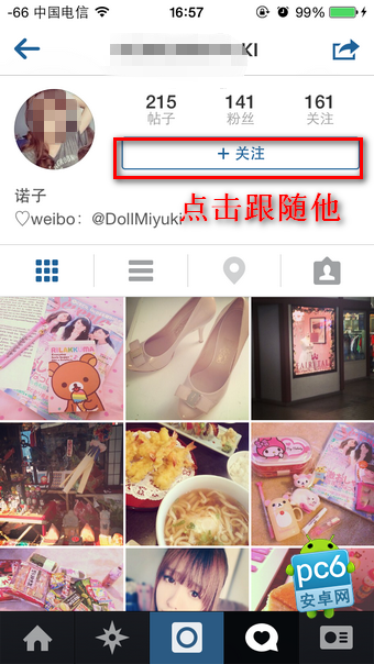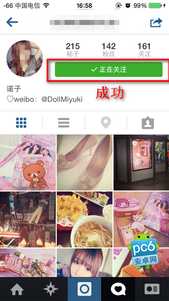 這樣就關注成功了,以後就可以在自己的圈子看到他發的圖片了。
