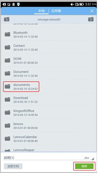 我們正在積極與Google方面溝通,將在三月份發布的WPS Office 6.0中解決這個問題。在WPS Office 6.0版發布之前,您可以參照如下方法,通過將文檔另存至內置存儲器(sdcard0)來滿足日常使用。