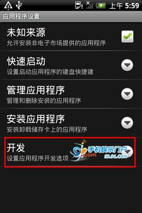 進入“設置”->“應用程序”->“開發”勾選“USB調試程序”。這樣設備才可以通過USB連線時被PC識別到。
