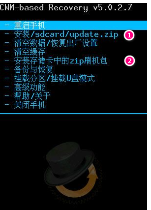 由於每個人的recovery都不太相同(但都差不多),以CMW的recovery為例的話,如果你是默認路徑下的備份,沒有改壓縮包名字的,請運行下圖中的①,如果你改名了(我這裡應用和系統文件分開備份了,所以加了點後綴),就運行②。
