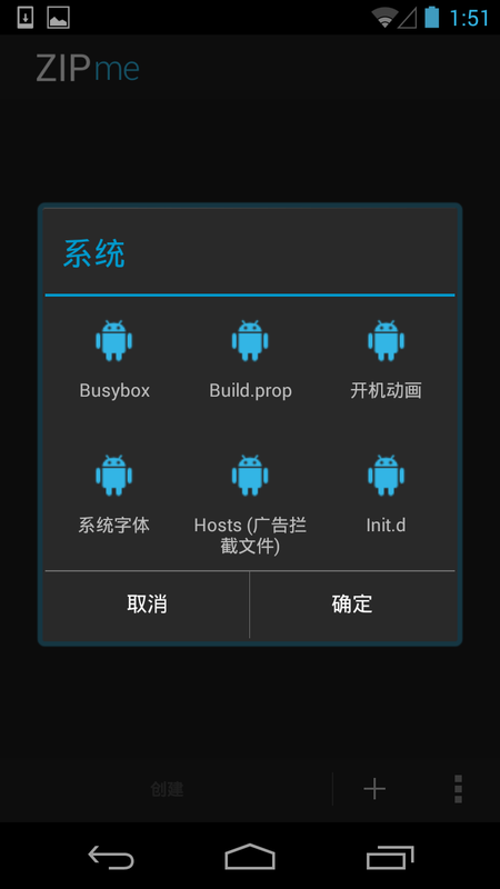 系統級備份制作,支持六類,含:Busybox、Build.prop、系統字體、Hosts、Init.d。單擊進行選擇,之後選確定就能創建備份了。
