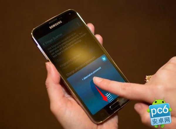 1)三星的指紋解鎖與iPhone5S並不相同,三星Galaxy S5的指紋識別設計在Home鍵上方,也就是屏幕的下方邊緣。(如下圖所示)