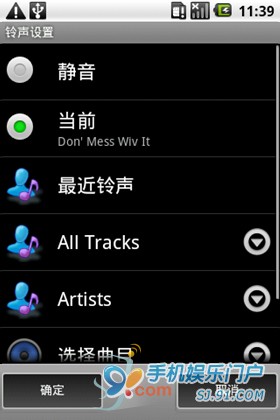 在彈出的鈴聲設置界面中選擇All Tracks,軟件會掃描目前存在存儲卡和手機裡面的所有音樂資源,選中自己喜歡的音樂,點擊確認即可設為鈴聲。
